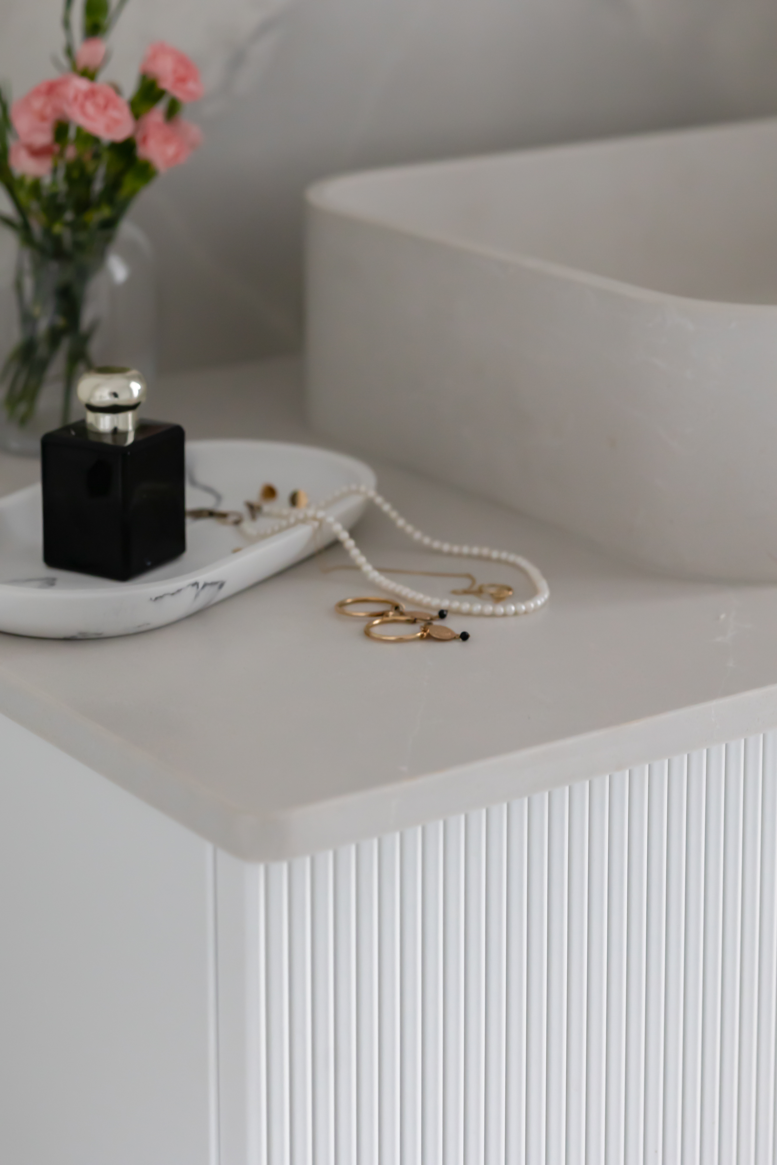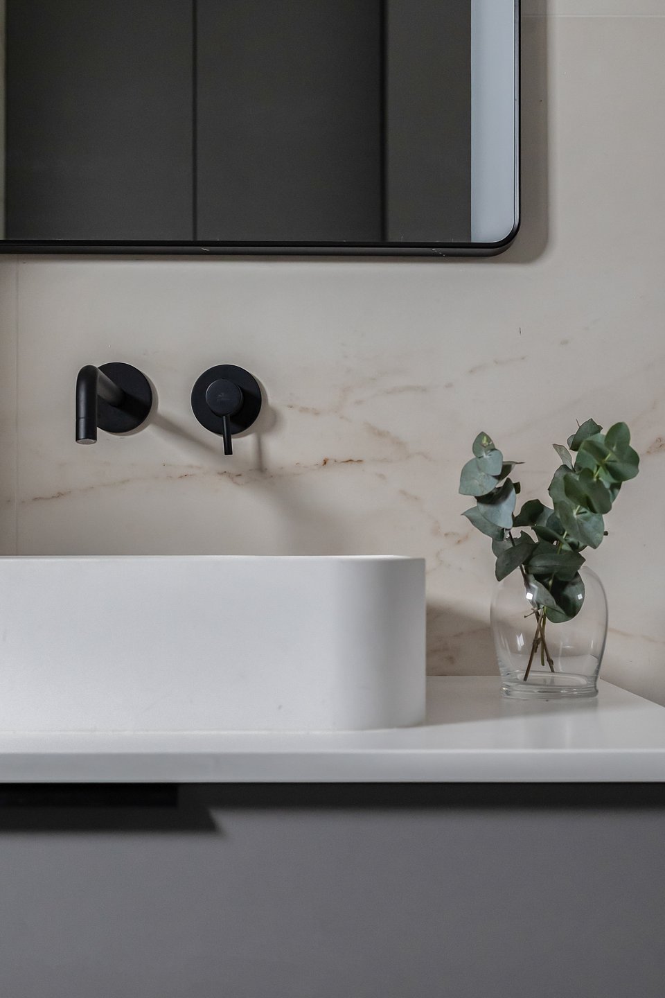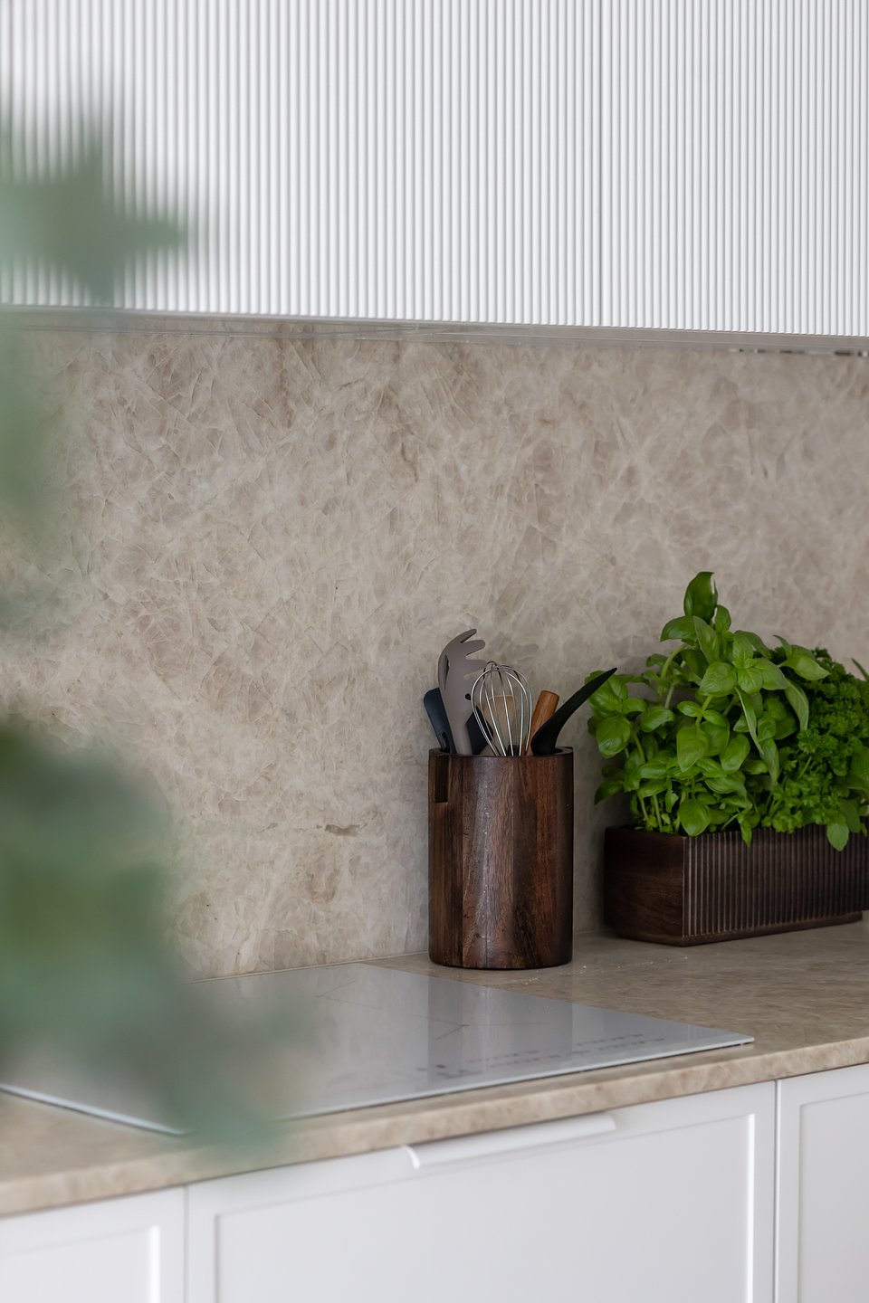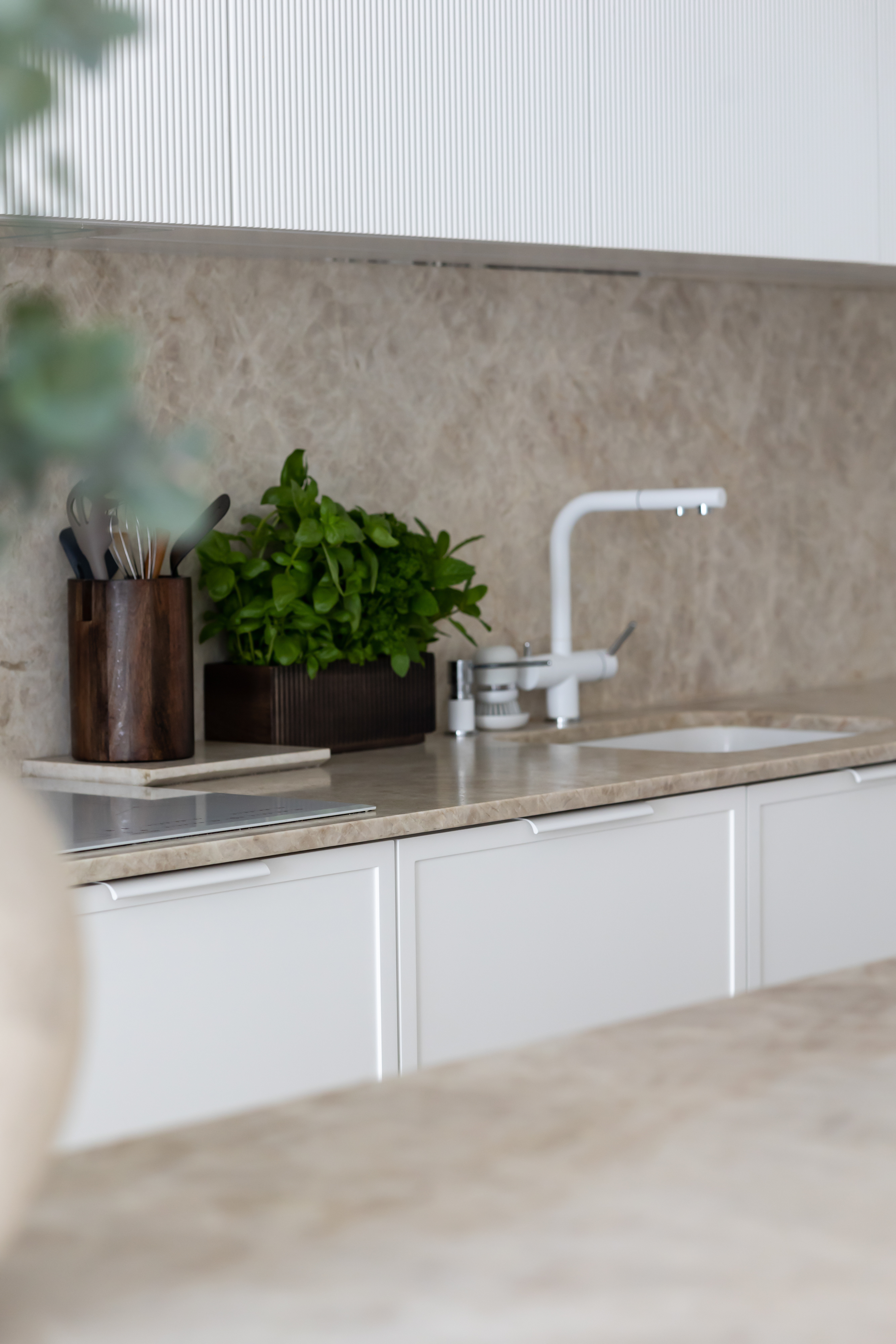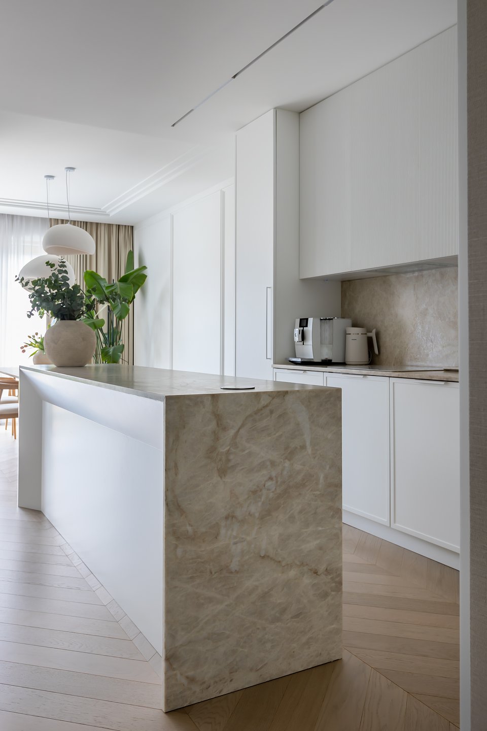 Od zawsze marzyłam o kuchni z wyspą – to przestrzeń, gdzie spotykamy się z bliskimi, rozmawiamy, pijemy kawę. Zależało mi na tym, aby kamień był tu głównym elementem. Prosty, stonowany projekt pozwala wydobyć z powierzchni to, co w niej najpiękniejsze – unikalny wzór i głębię